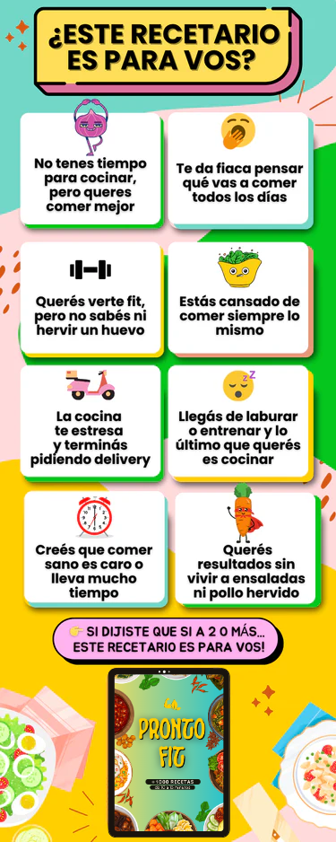 Si en ese tiempo no lográs preparar al menos 3 recetas en 10–20 min 🍽️⚡ y sentir que ahorraste tiempo ⌛ o comiste más rico, te devuelvo el 100% 💸.